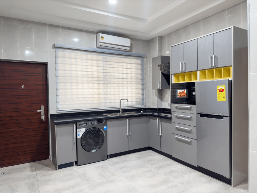 - Amenities: Air condition, Backup Power Supply, Bathroom with shower, carbon monoxide detector, Cooking utensils, Crib (Optional), Dining area, Electricity adapters, Hair dryer, Hand sanitizer, Hot Shower, In-room safe, Ironing Facilities, Kitchen/kitchenette, Living room/sitting area, Microwave,, Outdoor and On-Premise security monitoring, Outdoor swimming pool, Private Balcony, Private entrance, Refrigerator, Satellite TV, Sofa/lounge chairs, Tile Floor, Toiletries, Towels provided, TV – cable/satellite, TV – local only, Wardrobe, Washing machine